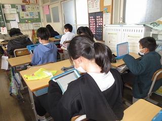 国語科で「調べたことを報告しよう」の学習をしています。タブレットで作ったアンケートをクラスのみんなで答えました。
