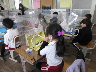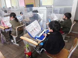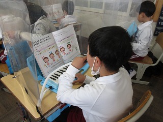音楽科で鍵盤ハーモニカの演奏の練習をしました。タンギングをして演奏しました。