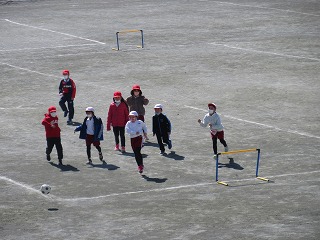 体育科でボールけり遊びをしました。
