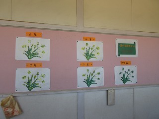 図書委員会が読書週間を行いました。本を借りるとシールがもらえます。各学年集めて、菜の花が咲きました。