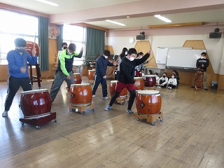 和太鼓の演奏を地域の方から教わっています。最後のクラブで発表しました。