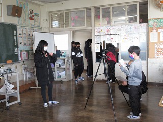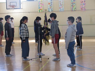 6年生を送る会 公開日 2023/03/08 更新日 2023/03/08 特別活動 5年生が企画して6年生を送る会をしました。6年生の自己紹介をしたり、思い出の映像を見たりしました。最後には、6年生から5年生に校旗を渡して、引き継ぎ式をしました。