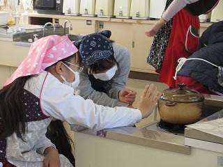 家庭科でご飯の炊ける様子を観察しました。