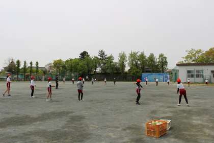 体育の学習では、体力テストに向けて「ボール投げ」の練習をしました。
