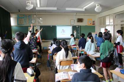 外国語の学習では、ゲームをしながら学校の教室の名前を復習しました。