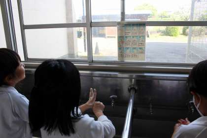休み時間の終わりや給食の前には、「手洗いの歌」を口ずさみながら、楽しそうに手洗いをしていました。