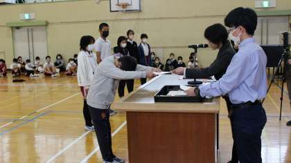 委員長、学級委員の認証式を行いました。委員長からは活動内容の紹介がありました。
