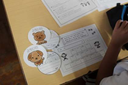 学校探検に向けて、メッセージカードを作成しました。1枚1枚丁寧に心を込めて作りました。