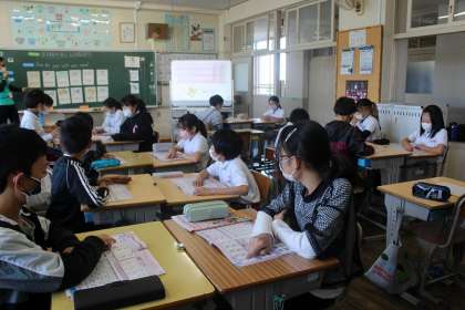 5月8日 学校生活5年生 公開日 2023/05/08 更新日 2023/05/08 各学年から 外国語の学習では、キーワードゲームをしながら「月」の言い方を楽しく学びました。 キャンプの出し物について、班ごとに案を考えました。