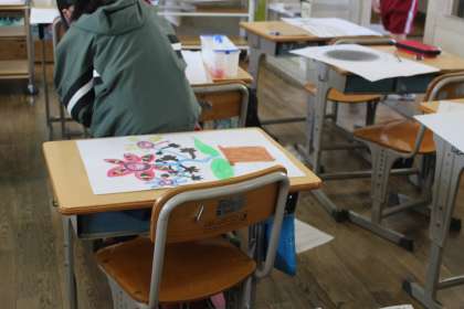 図画工作の学習では、「まぼろしの花」をテーマに想像を広げ、色とりどりの花を描きました。