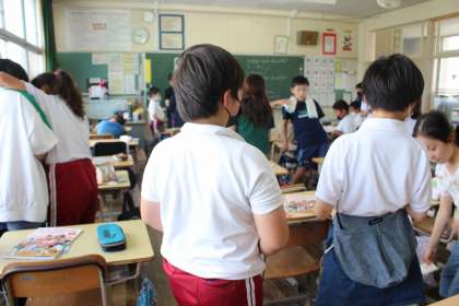 自己紹介カードを作成し、名前や好きなスポーツ、食べ物などを伝え合いました。