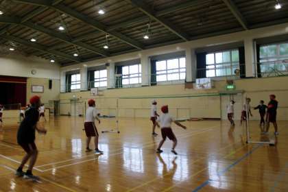 体育の学習で、バレーボールを行いました。サーブやレシーブの練習をしました。