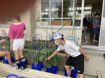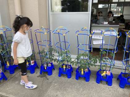 自分で育てたい野菜の苗を植えました。花を咲かせている野菜もあります。