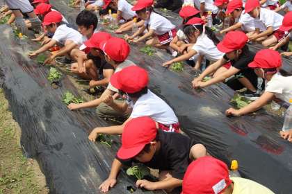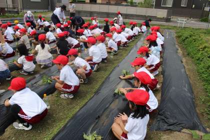 サツマイモの苗を植えました。ペットボトルでたっぷり水やりをしました。