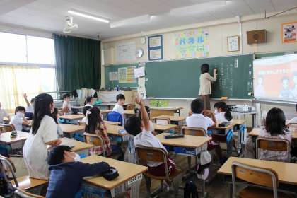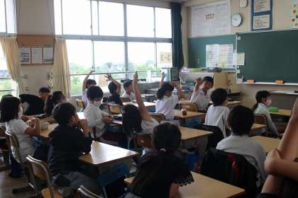 タブレットの使い方について、動画をもとに話し合いました。自分たちの生活時間の見直しにつながりました。