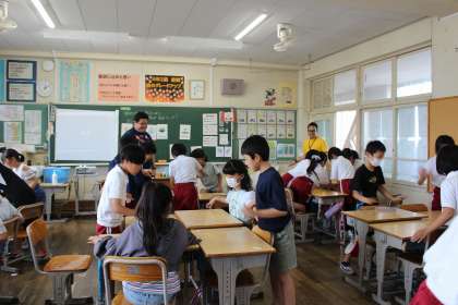 外国語活動の学習では、カルタゲームをしながら、曜日の言い方に慣れ親しんでいました。