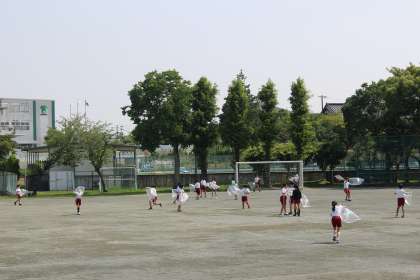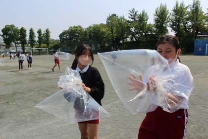 理科の学習では、閉じ込めた空気がどのようになるのかを調べるために、ビニールに空気を集めました。