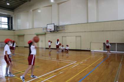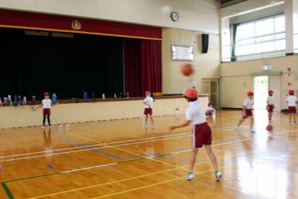 体育の学習では、ペットボトルを的にして、ボール投げの練習をしました。