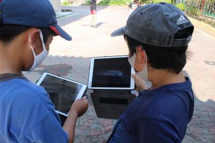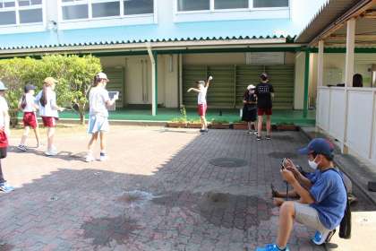 写真クラブが、水風船の割れる瞬間の撮影にチャレンジしました。