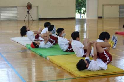 体育の学習では、ブリッジやゆりかご、前転などの技に挑戦しました。