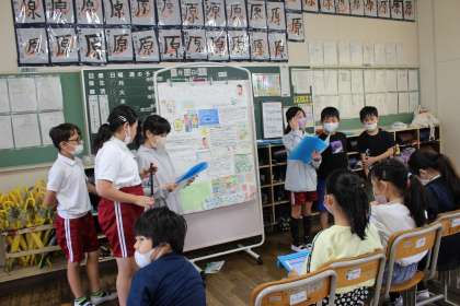 総合では、MOTTAINAIを減らすための計画を伝え合いました。体育のマット運動では、タブレットの追っかけ機能を使って、技の上達を目指しました。