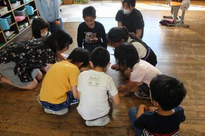 7・8組のみんなでかるたをしました。読み手の声に一生懸命耳を傾けていました。