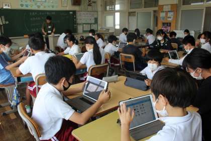 総合の学習では、防災について調べ学習を進めています。