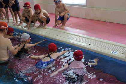 今年度最後の水泳学習に出かけました。けのびやバタ足、クロールなど、コースごとに練習しました。