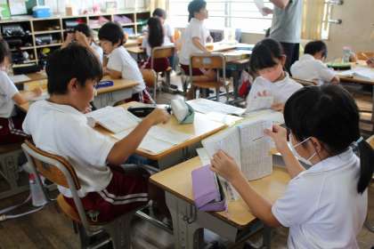 国語辞典を使って意味調べをし、グループで共有しました。
