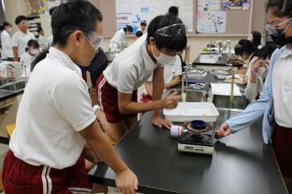 理科の学習では、水溶液に熱を加えたときの変化について実験しました。
