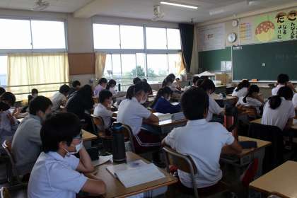 国語の学習では、「海のいのち」のお話を聞き、感想を書きました。