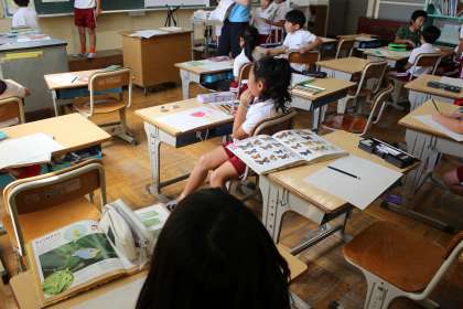 国語の時間には、お気に入りの虫クイズをつくりました。生活科では、アサガオの鉢の後片付けをしました。