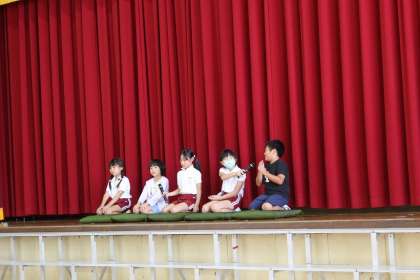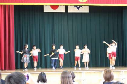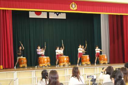 「若東座」をテーマに、和太鼓、落語、若林のおどりを披露しました。最後に合唱をしたり、保護者の皆さんと一緒に踊ったりしました。