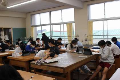 図工の時間には、若林の未来の街をテーマに下描きをしました。
