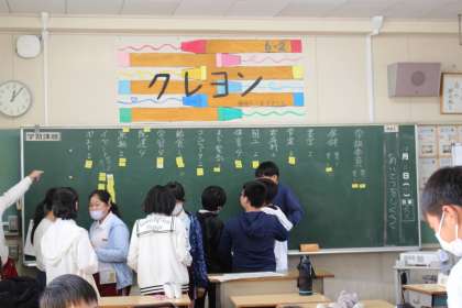 体育の時間には、リレーのコースでタイムを測りました。学活の時間には、後期の係活動を決めました。