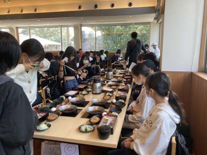 カツ煮や小鉢など、美味しいお昼ご飯をいただきました。