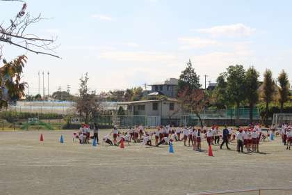運動会の表現の練習をしました。曲に乗って、V字バランスや肩倒立、扇などの技の練習をしました。