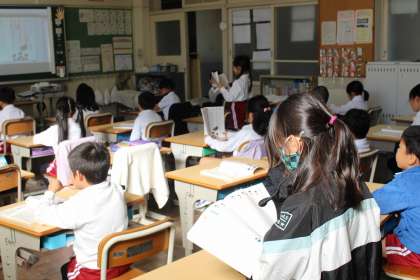 国語の時間には、新出漢字の練習をしたり、「なににみえるなか」を友達と話したりしました。