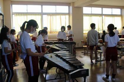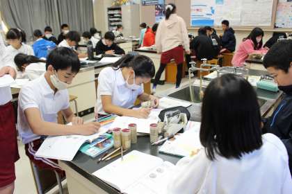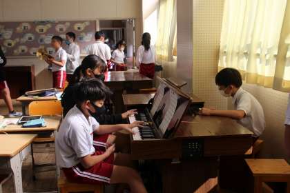 音楽の時間には、「RPG」の合奏のパート練習をしました。理科の時間には、しま模様に見える土地の観察として、ボーリング試料を使って土地の様子を調べました。