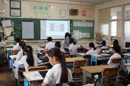 書写の時間には、「まがり」「はね」に気を付けて「元」を書きました。理科の時間には、方位磁針の使い方を復習しました。社会の時間には、事故から守ってくれている人たちについて、グループでまとめをしました。