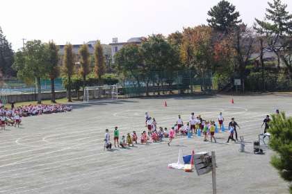 運動会のリレーの練習をしました。バトンのつなぎ方がスムーズになってきました。
