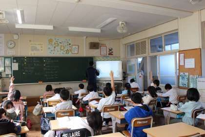 算数の時間には、いろいろな計算の復習として、練習問題に取り組みました。