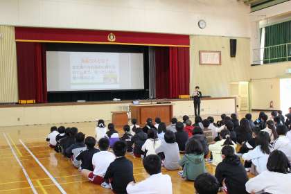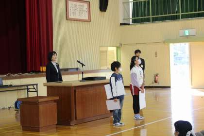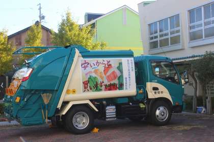 夏休みの募集した「食品ロス」に関するポスターの表彰式を行いました。5年生の児童の作品は、パッカー車に描かれ、今後市内で活用されます。