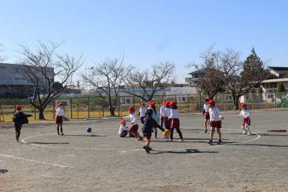 体育の時間には、ころがしドッジボールをしました。ボールを増やして機敏な動きで楽しく活動できました。