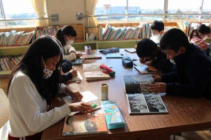 雪だるま読書週間で、図書館もにぎわっています。おすすめの本を紹介する読書郵便を送り合っています。