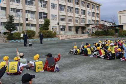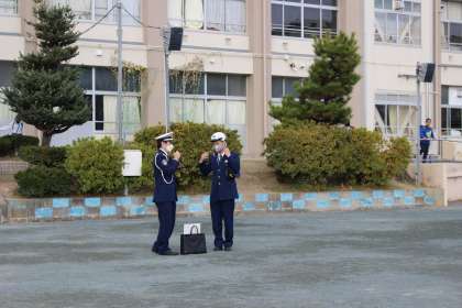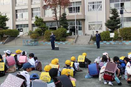 1〜3年生の下校時間に、警察署の方から自転車の正しい乗り方等についてお話していただきました。