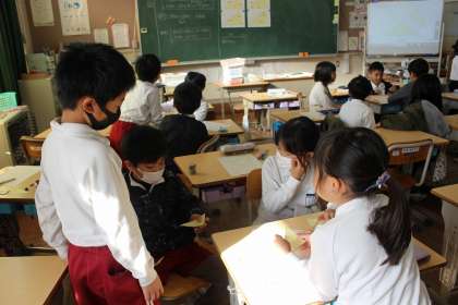 11月29日 2年生 公開日 2023/11/29 更新日 2023/11/29 各学年から 音楽の時間には、打楽器のさまざまな音色に興味をもって聴くことができました。算数の時間には、三角形の紙を切ってできる形について考えました。