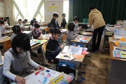 図工の時間には、窓の中の様子を描きました。算数の学習では、四角形の縦と横の辺の長さ比べをしました。