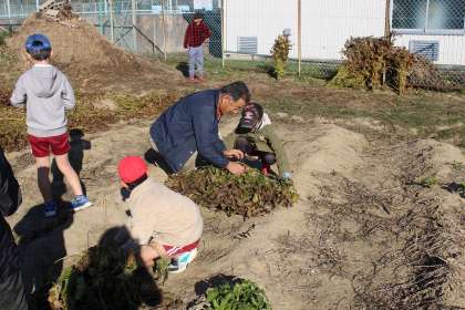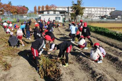 総合の時間には、枝豆の枝縛りをしました。縛った枝は、年末の神社のどんど焼きに使ってもらえます。