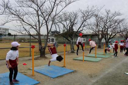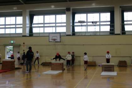 体育の時間には、タグラグビーをしたり、鉄棒や跳び箱の練習をしたりしました。